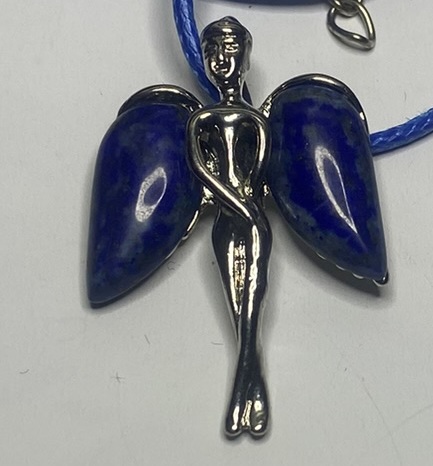 křídel andílka. Lazurit je tvarovaný do slziček. Anděl je ze slitiny