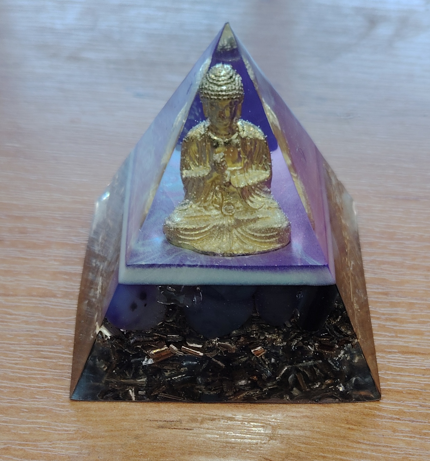 mosazné špony pro tříštění negativní energie, na vrcholu mosazný buddha na