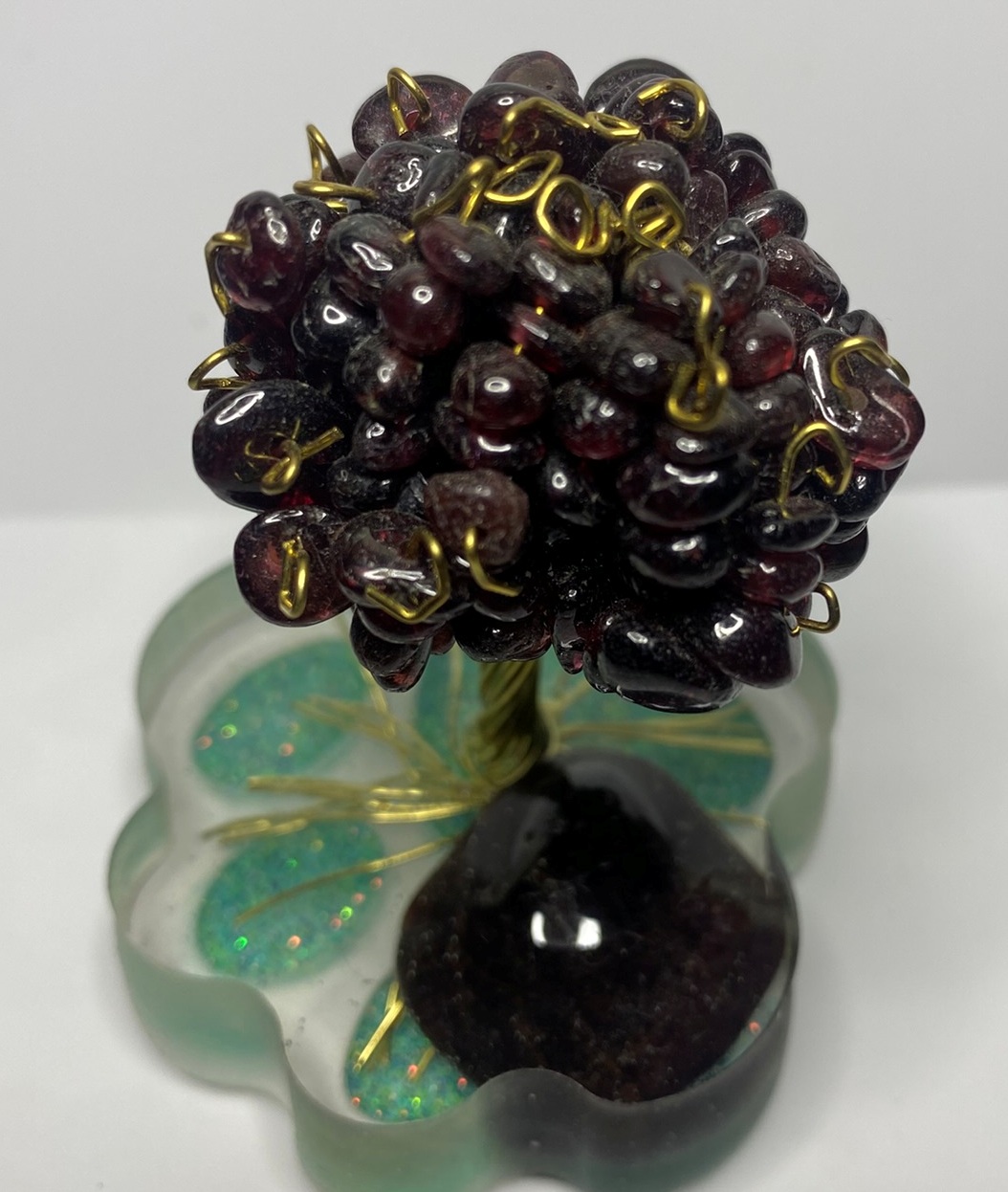 Minerály v koruně: granáty almandin vpletené do koruny stromu, o velikosti XS (do 1