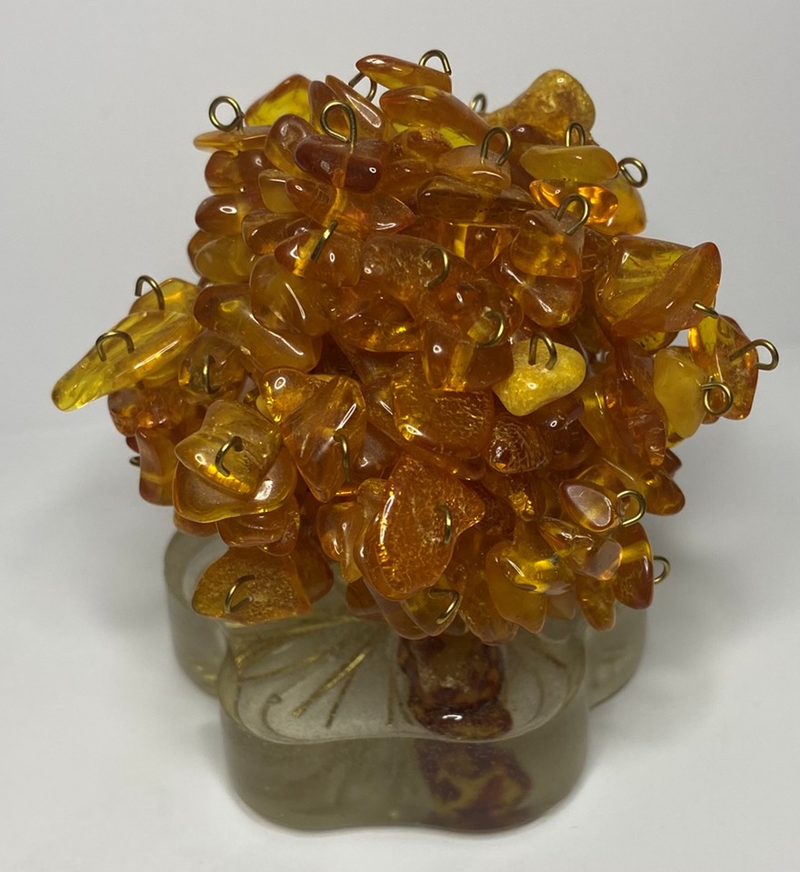 Minerály v koruně: jantary medové vpletené do koruny stromu, o velikosti XS (do 1 cm)