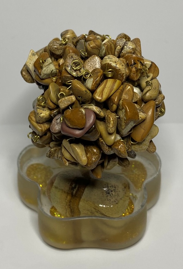Minerály v koruně: jaspisy obrázkové vpletené do koruny stromu, o velikosti XS (do 1