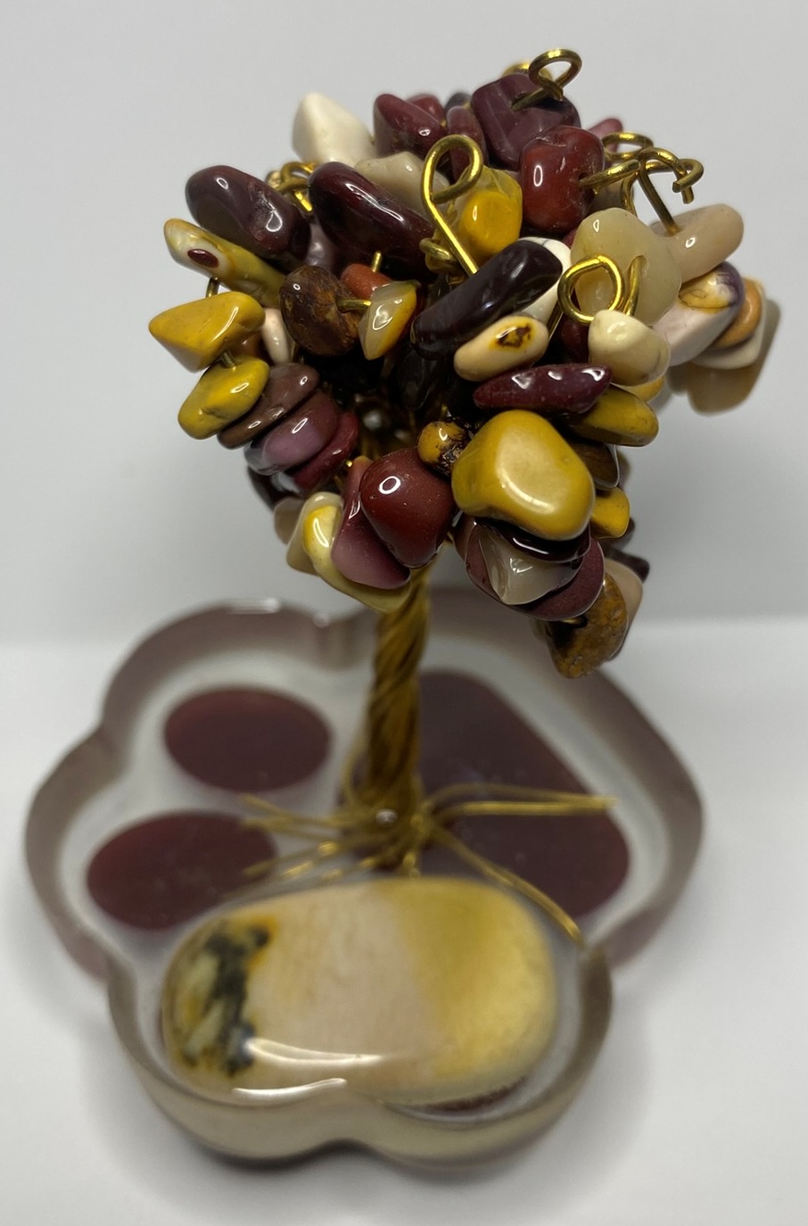 Minerály v koruně: mookaity vpletené do koruny stromu, o velikosti XS (do 1 cm), pochází z Austrálie, přírodní, nepřibarvené.