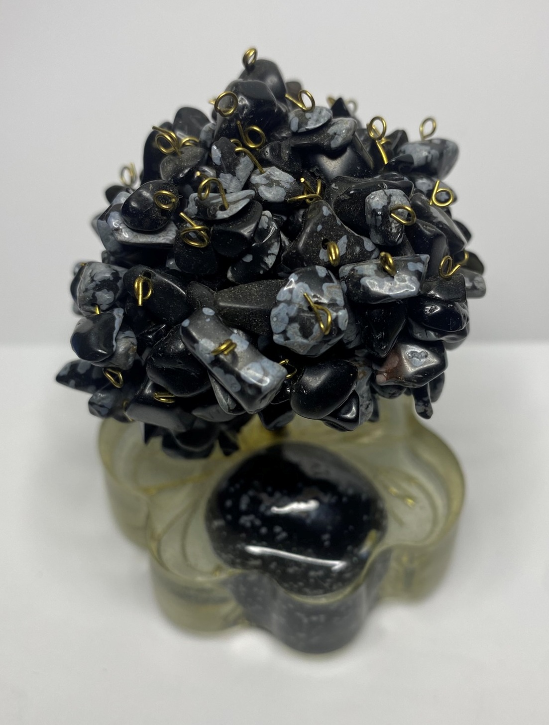 Minerály v koruně: obsidiány vločkové vpletené do koruny stromu, o velikosti XS (do 1