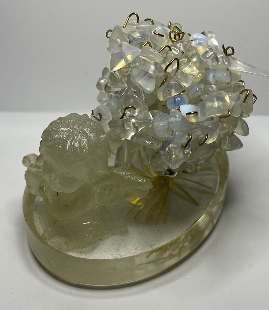 základna: ovál z křišťálové pryskyřice s holografickým andělem, vložený