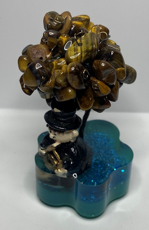 Minerály v koruně: tygří oka vpletená do koruny stromu, o velikosti XS (do 1 cm),