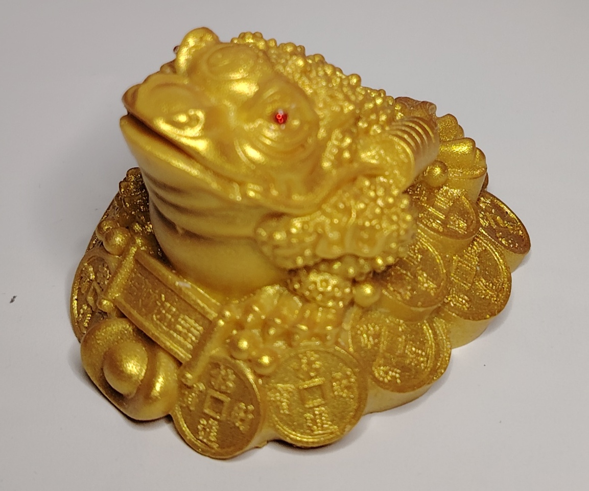 Žába hojnosti vyrobená na 3D tiskárně, bez minerálů